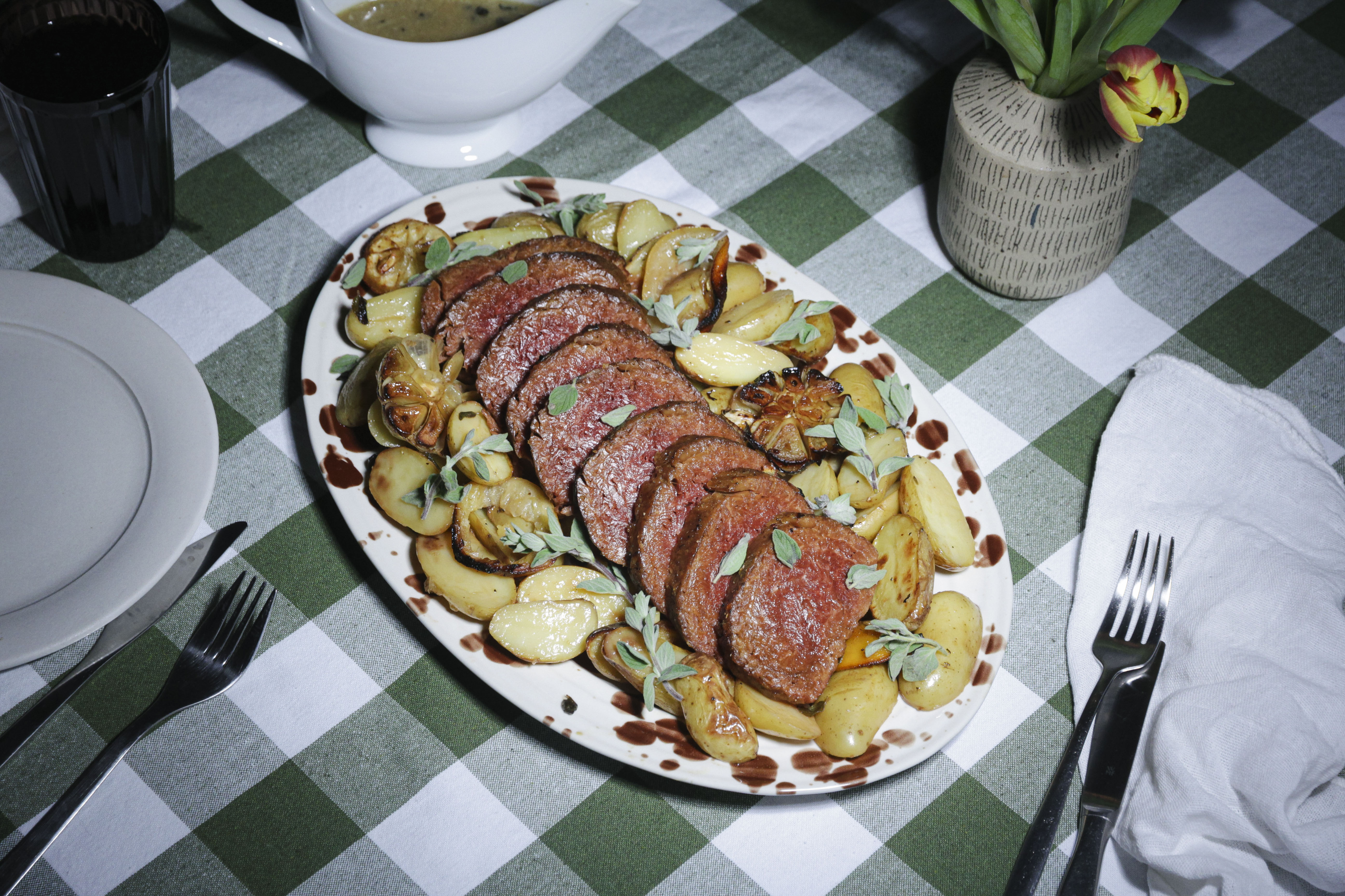 WITH THICK-CUT FILET AND RED WINE