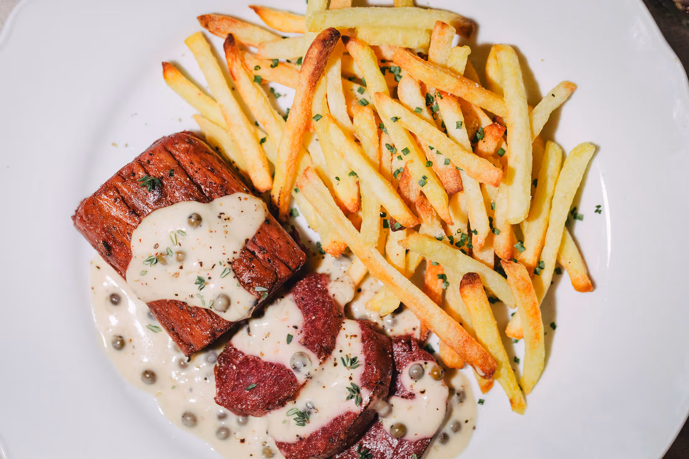 7. Serve spooned over Meaty Meat with a side of crispy, salty fries. If you're feeling fancy, top everything with a sprinkle of fresh chives or thyme.