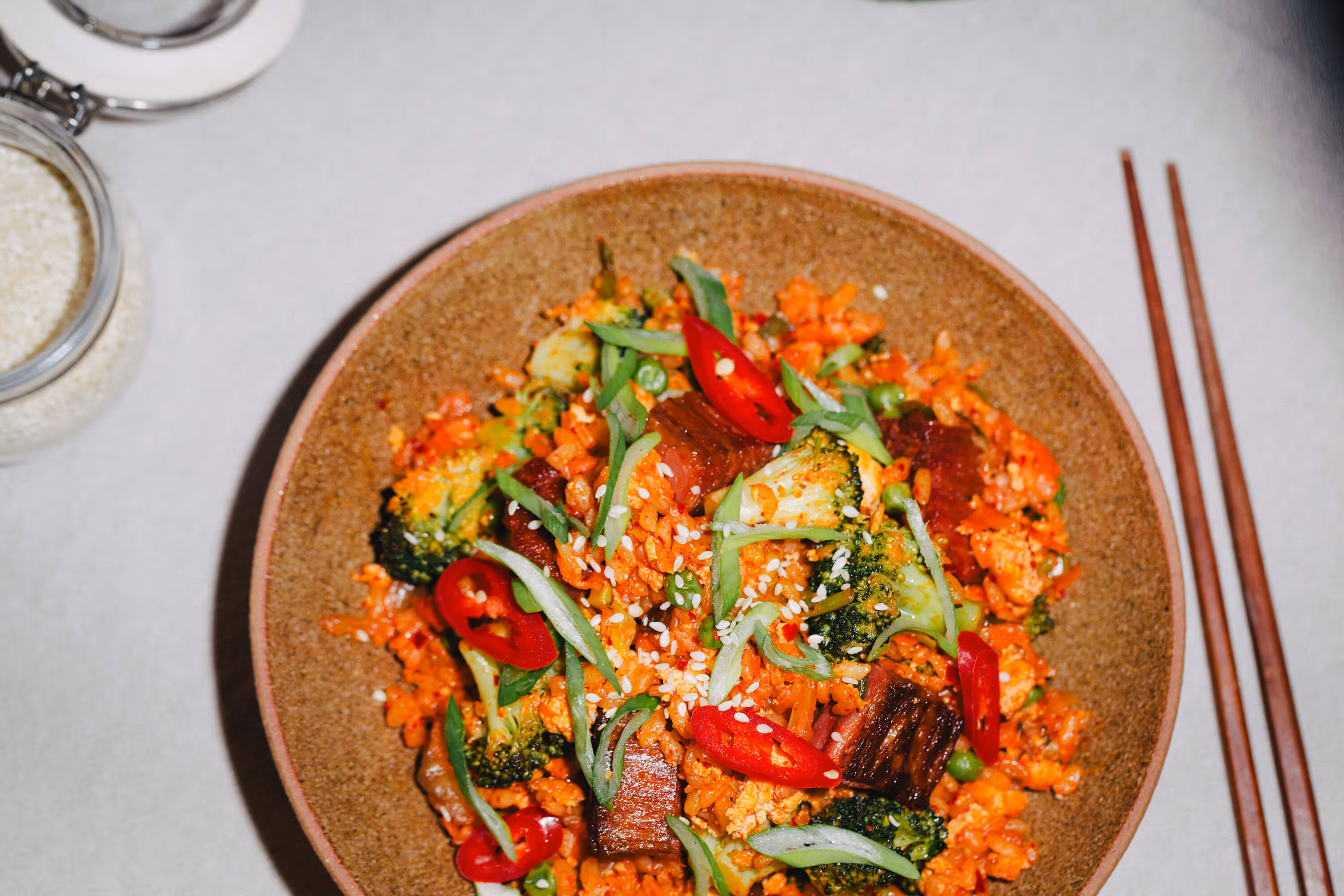 Spoon into a bowl and sprinkle with toasted sesame seeds, finely sliced spring onion, and extra chili if you’re in need of heat.