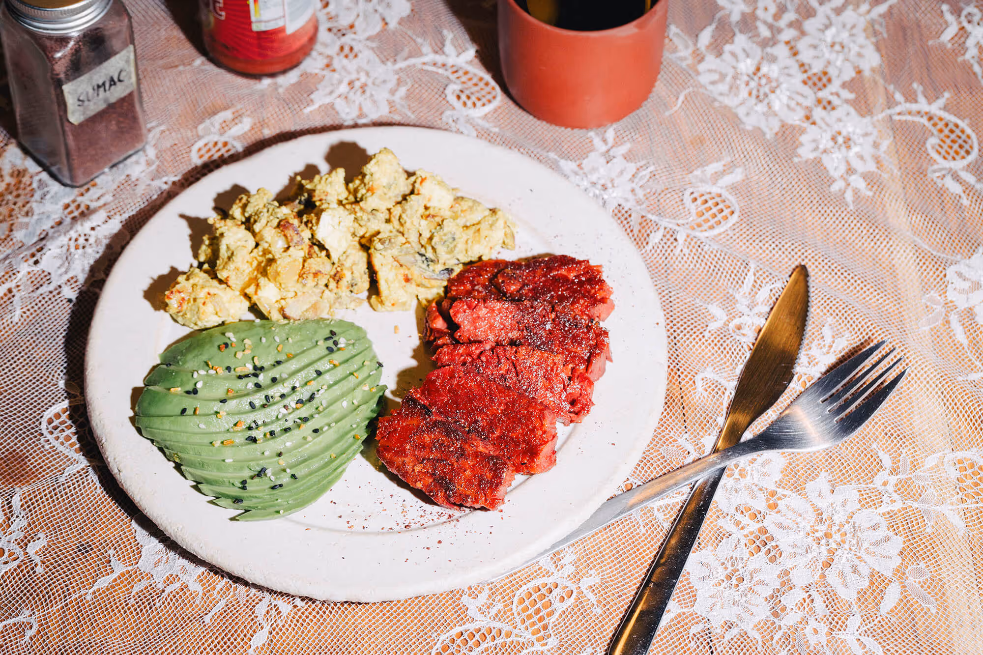 Serve this “steak & eggs” with some perfectly ripe avocado, or a piece of multi-grain toast. Or, use this scramble to make an incredible breakfast burrito!! The sauce will stay good in the fridge for up to a week.